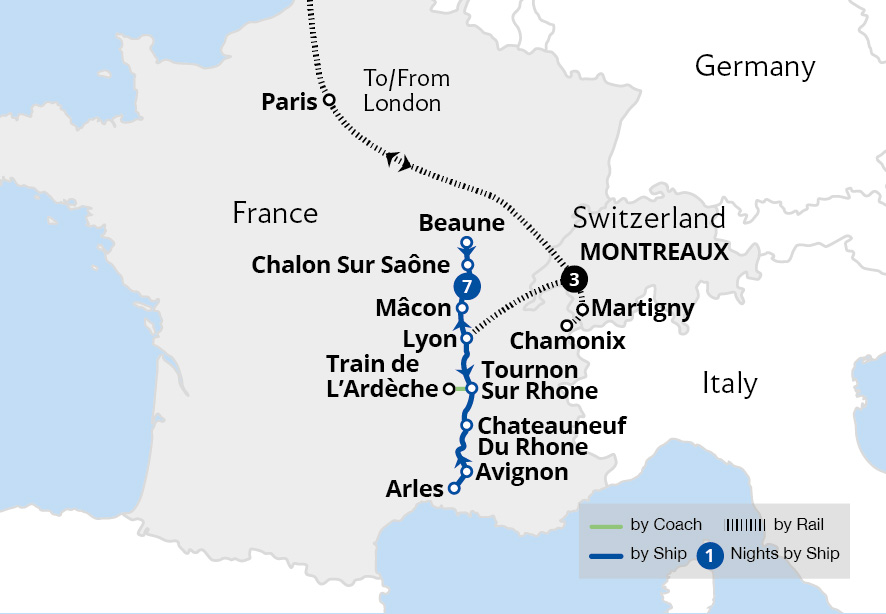 Discover the gems of southwest Switzerland, staying in luxurious Lausanne, then continue to Lyon for a seven-night cruise. During a three-night stay on the shimmering shores of Lake Geneva, we visit Château de Chillon and experience the Mont Blanc Express journey. The holiday continues with a cruise along the elegant Rhône which sees us...